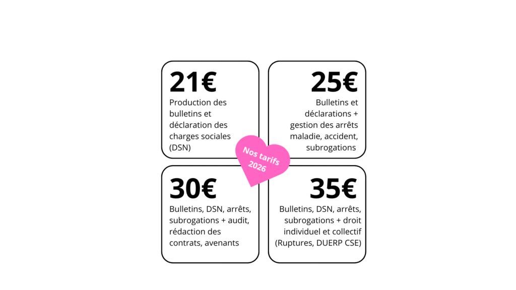 4 tarifs de base, en partant de la simple production de vos bulletins de salaire, jusqu’à la délégation complète de votre service RH.